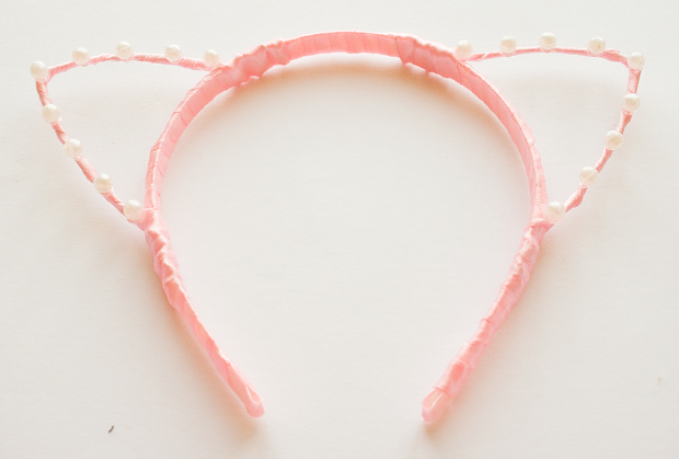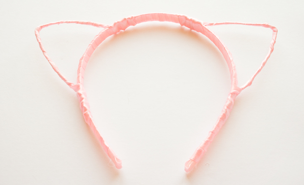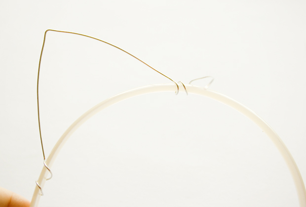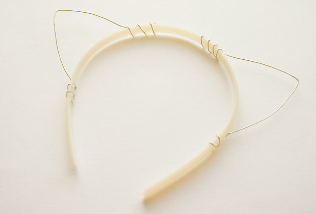 Step 3 - After wrapping, bend the wire into a basic kitty ear shape, & then secure at the other end by wrapping it around the headband again.