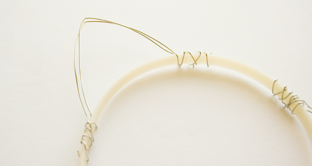 Step 2 - Cut a length of wire about 20cm long. Wrap around your headband where you want the ears to start, as pictured.