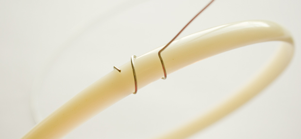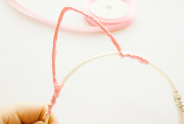 Step 7 - Keep going until you have completely covered all the wire. Repeat for other ear.Remember to keep glueing the ribbon down as you wrap, or it will unravel!