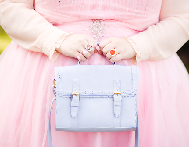 VPONSALE DRESS* // ASOS BAG // SOUTH @ VERY BLOUSE // LE BUNNY BLEU SHOES // ASOS NECKLACE, c/o VOUCHERCODES.CO.UK // DOLLY DARLING HEADBAND // DOLLY DARLING TEACUP RING // JI JI KIKI CAKE RING* // STARCHILD JELLY RING* // BOW RING FROM CHARLOTTE